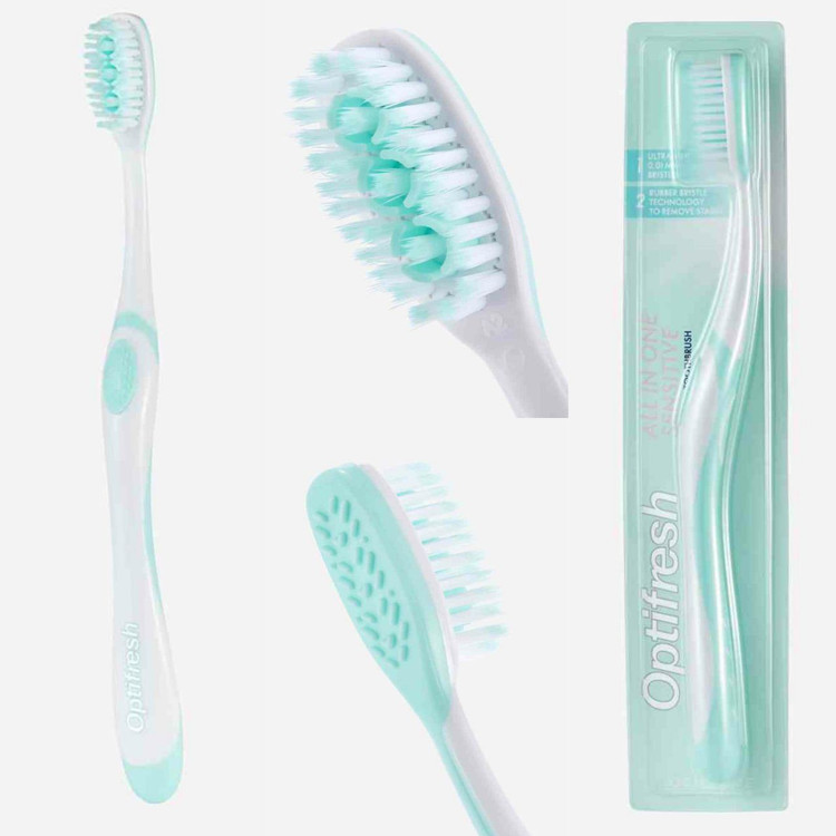 طراحی شده برای تمیز کردن دندان های حساس و محافظت از سلامت دهان و دندان به عنوان بخشی از روتین م effectiveثر مراقبت از دهان ؛ مسواک نرم با برس بسیار نرم. موهای لاستیکی برای از بین بردن لکه های روی دندان ؛ پاک کننده زبان لاستیکی به پاکسازی باکتری های روی زبان کمک می کند. تیغه های بسیار نازک هنگام ماساژ لثه ها به آرامی دندان ها را تمیز می کند. دستگیره لاستیکی یک دستگیره ارگونومیک را فراهم می کند.