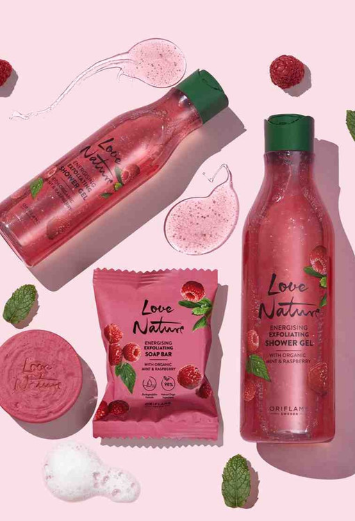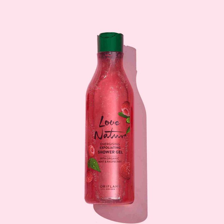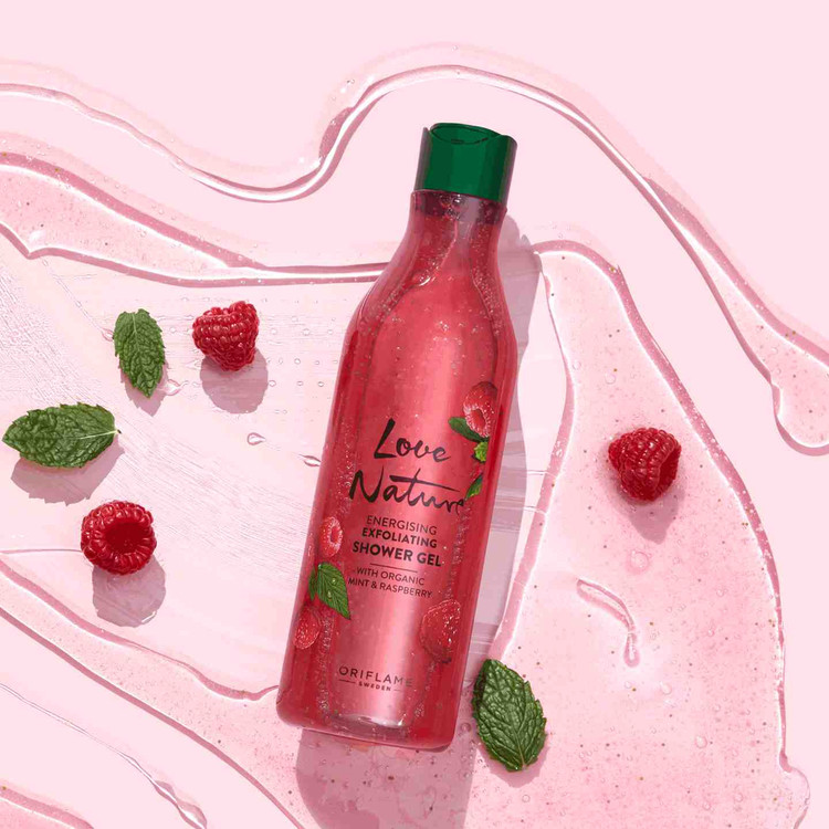 LOVE NATURE Energising Exfoliating Shower Gel with Organic Mint & Raspberry