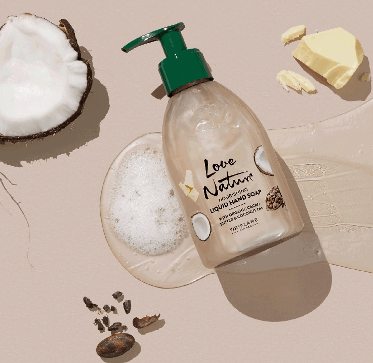 🥥دست های خود را با این مایع دستشویی که با کره کاکائو و روغن نارگیل طبیعی ارگانیک آغشته شده است، تمیز کنید.