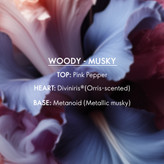 رایحه ای تازه، چوبی و مشک دار که عقل را تحریک می کند و با مشک فلزی، ترکیبی تازه، آینده نگر و فلزی، حسی اسرارآمیز می بخشد.