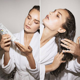 2. مو را کاملاً خیس کرده، سپس کمی فشار دهید تا آب اضافی خارج شود.