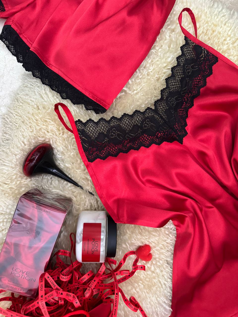 ست تاپ و شورت تور دار، عطر و کرم بدن لاوپوشن
