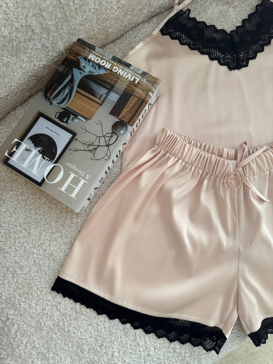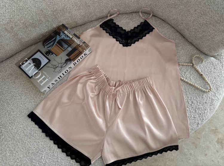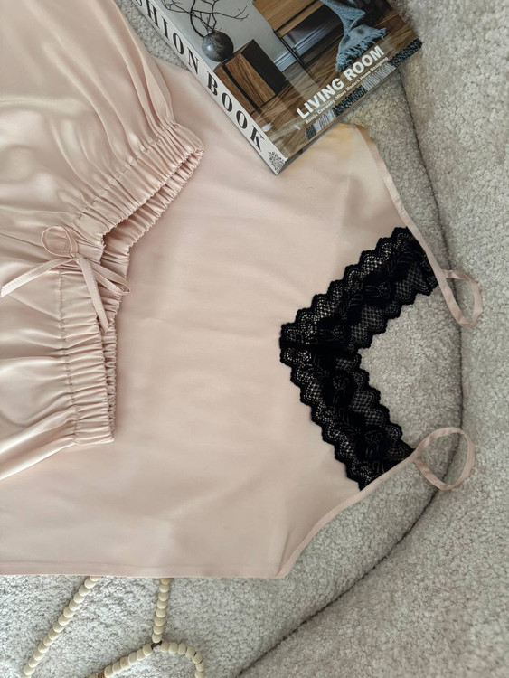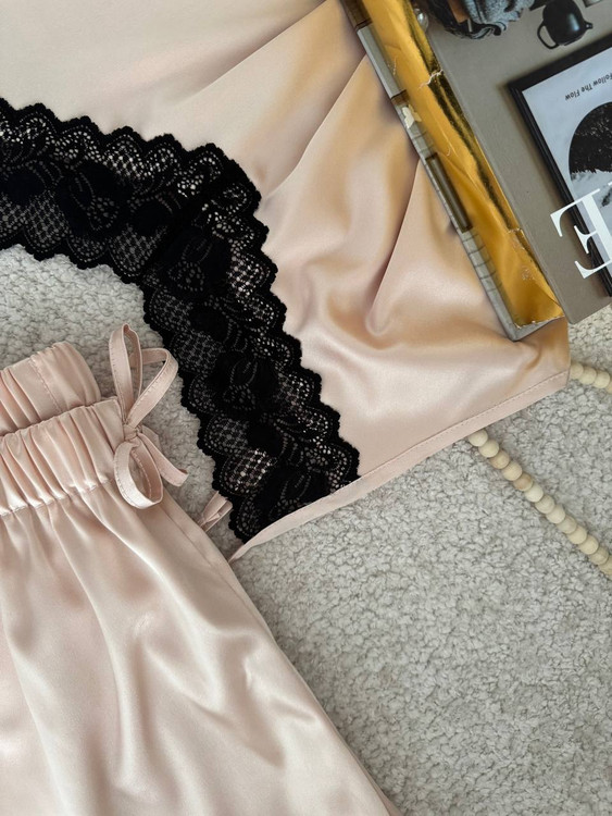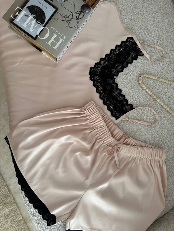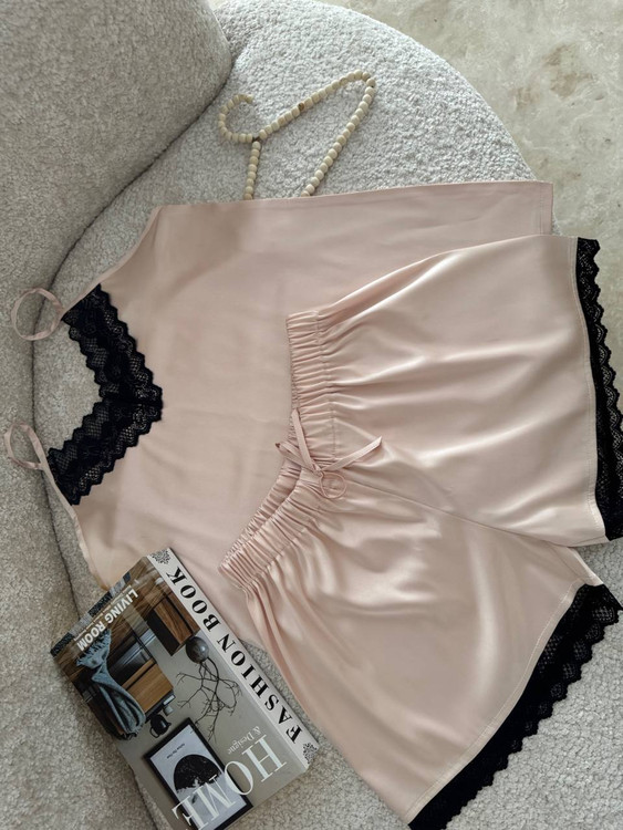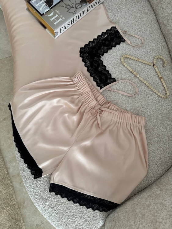 تاپ و شورت تور دار با جنس ساتن ال ایکس