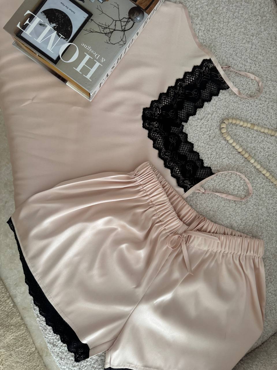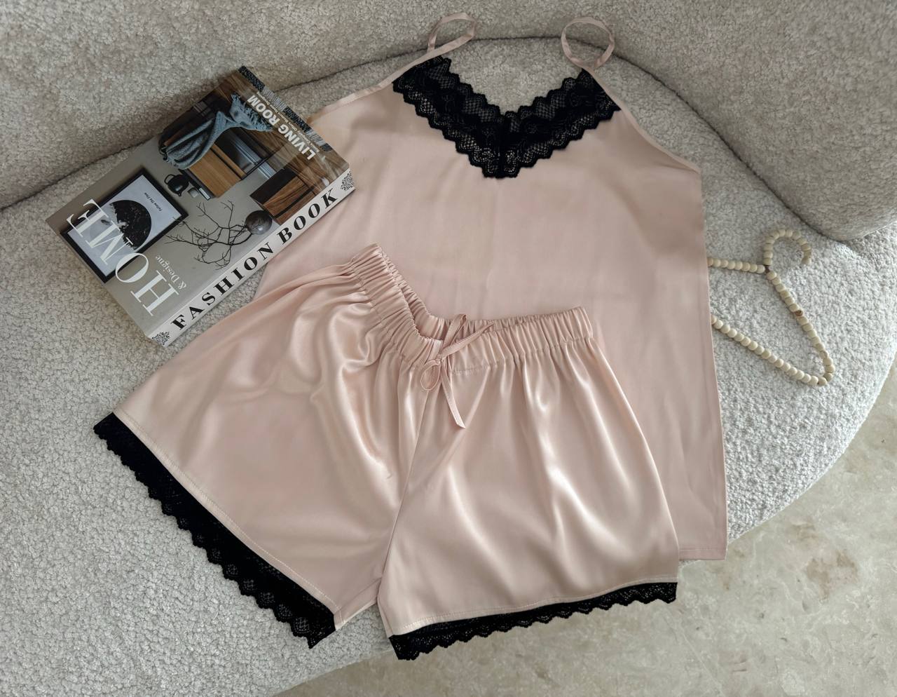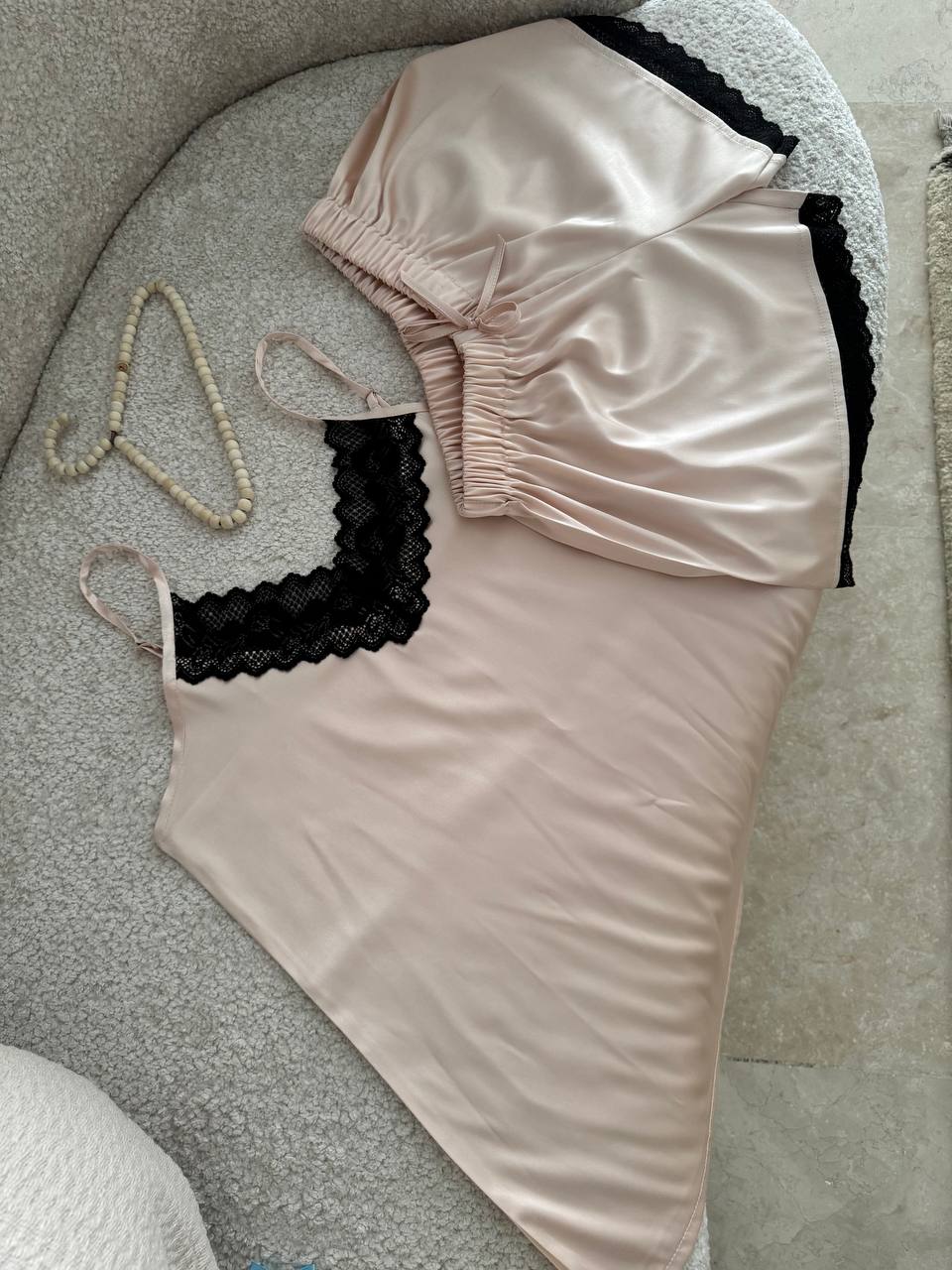 تاپ و شورت تور دار با جنس ساتن ال ایکس